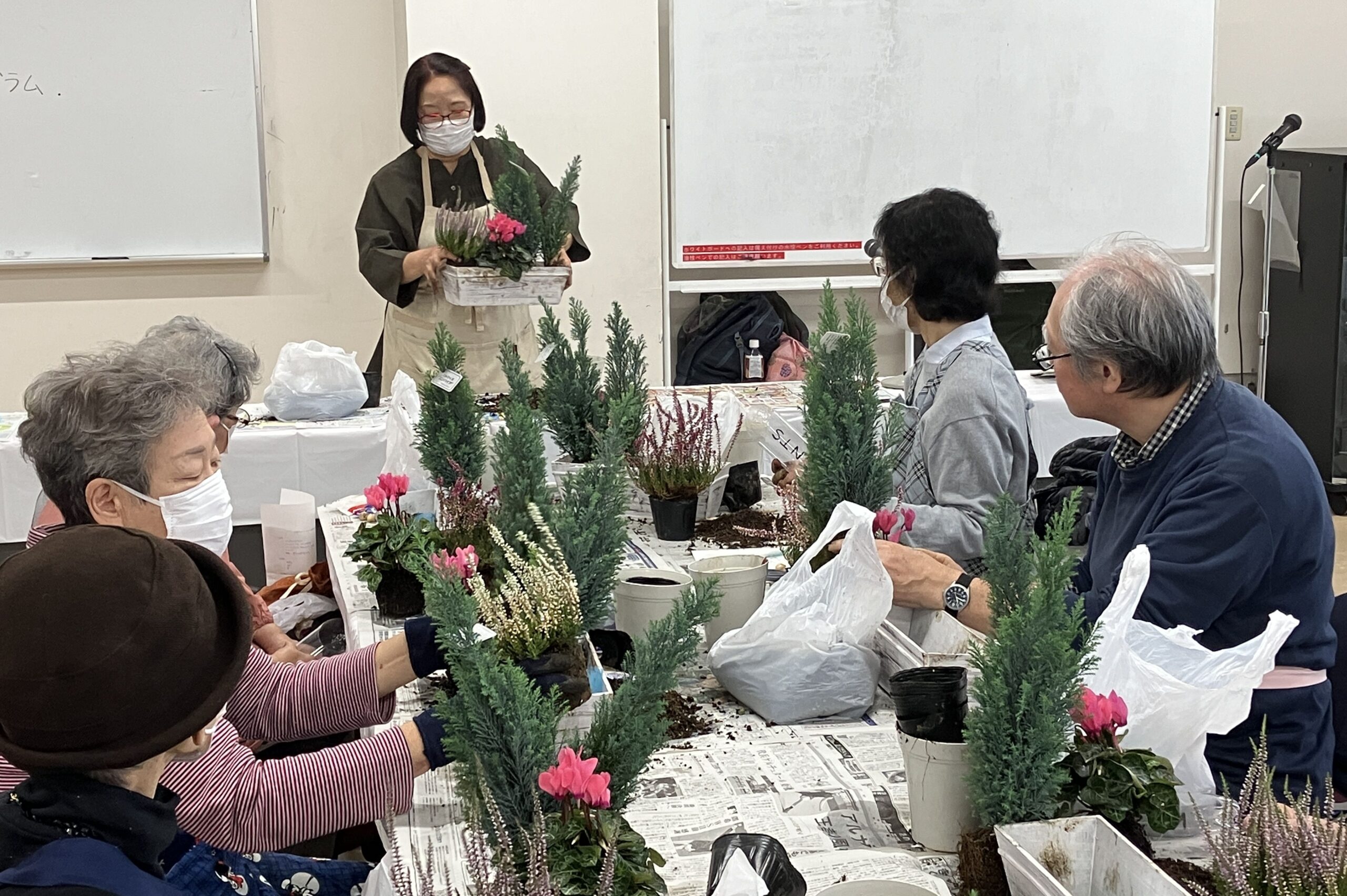 参加された皆様は、原先生のアドバイスを聞きながら、それぞれオリジナリティ溢れる素敵な寄せ植えをされていました。
