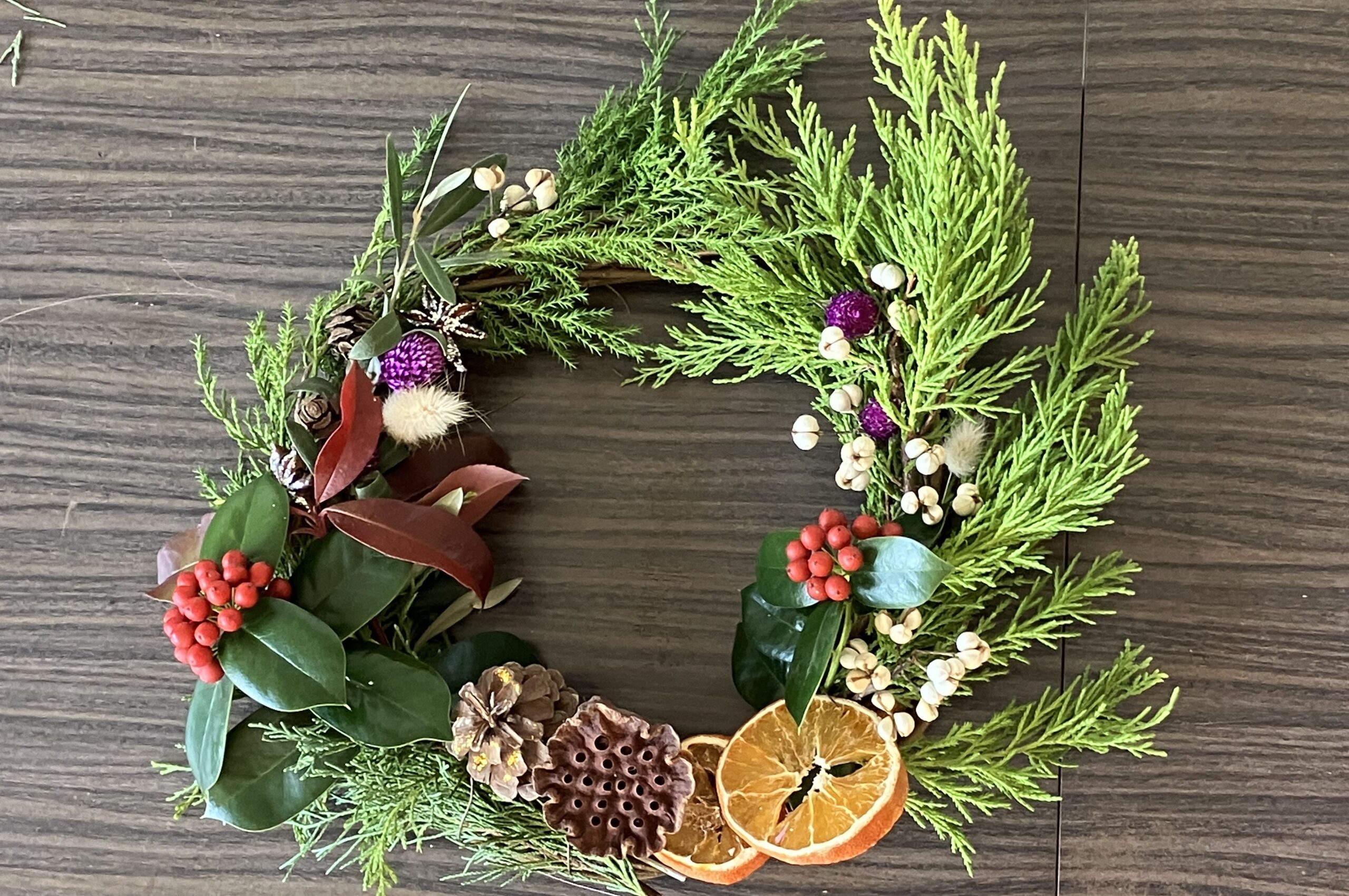 公園の植物を素材として、天王洲公園では「ドライスノードームづくり講座」を、しながわ中央公園では「ウィンターリースづくり講座」を、それぞれお楽しみいただきました